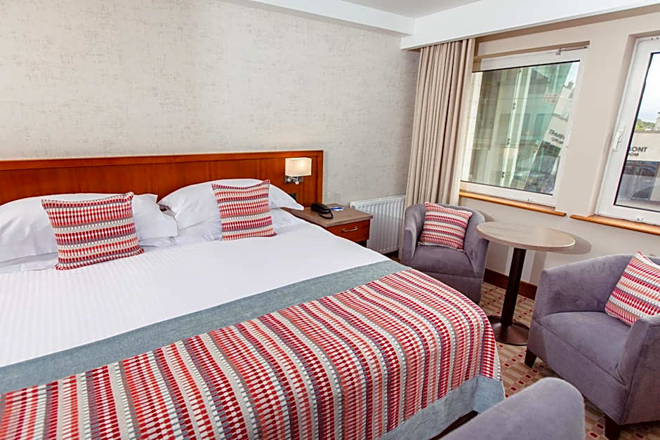 With a king-size bed, slippers and bathrobes, this modern room offers stunning views of Belfast, incorporating the Castlereagh Hills, Stormont Parliament Buildings and the Newtownards Peninsula. It includes a safe, plasma TV and iPod dock, as well as welcome tray and a telephone with voicemail. The private bathroom has a hairdryer and Wi-Fi is available for an extra cost.