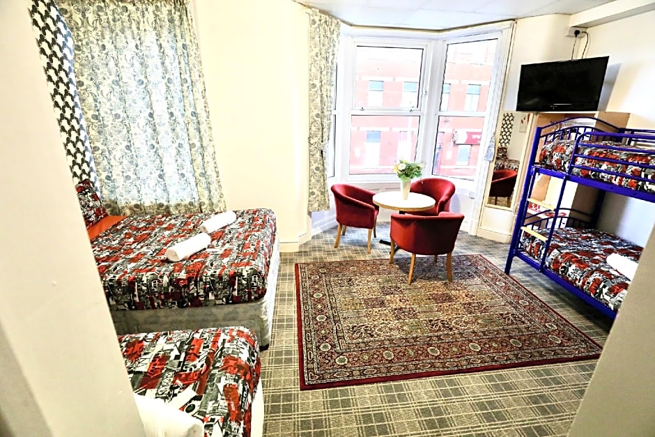 The Blackpool Central Hotel offers a variety of room options for guests. Rooms include Twin Rooms with Private Bathrooms and Twin Rooms with Showers, which accommodate 2 adults and feature two twin beds. The hotel also offers Double Rooms with Private Bathrooms and Budget Double Rooms, which accommodate 2 adults and have either a double bed or a slightly smaller room size. Families can choose from the Deluxe Family Suite, Family Room with Shower, and Superior Family Room, which accommodate 5 to 6 adults and have various bed configurations. Smoking is not allowed in any of the rooms.