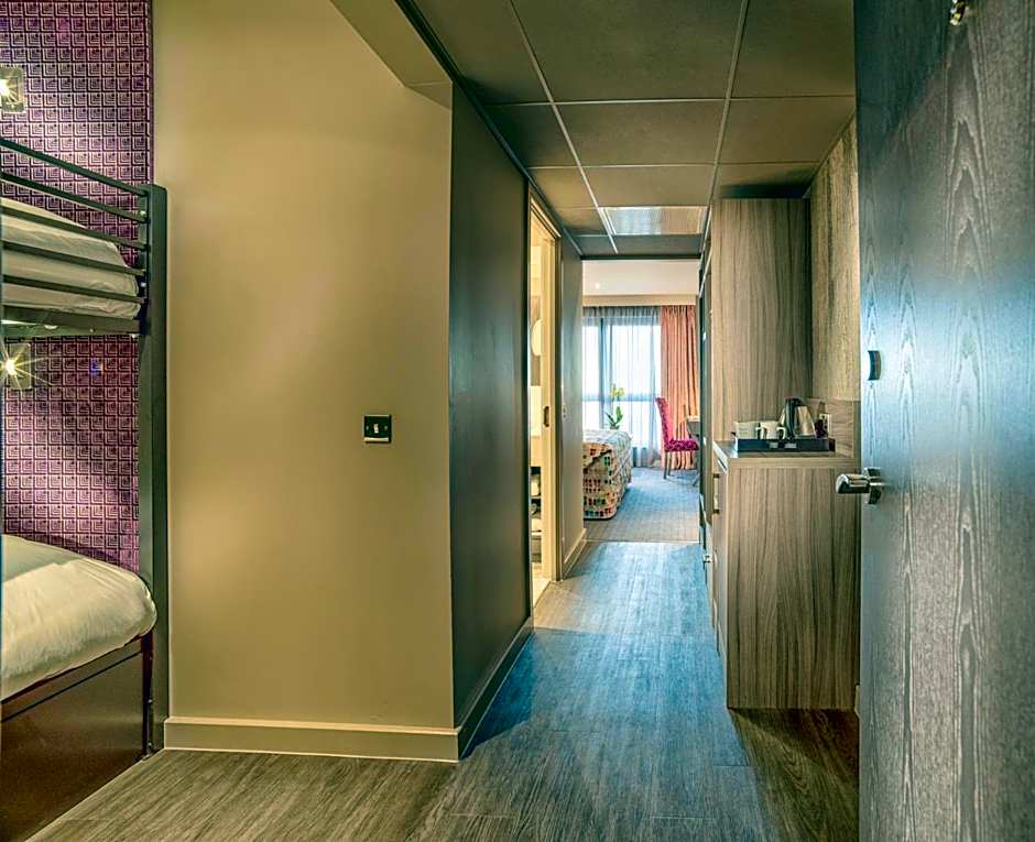Accessible family rooms feature a super king-size bed dressed in Designers Guild fabrics and the rooms all include a comfortable armchair, a 55-inch TV with Freeview, air conditioning and high-speed WiFi. Family rooms have 6-foot bunk beds in their own section of the room.