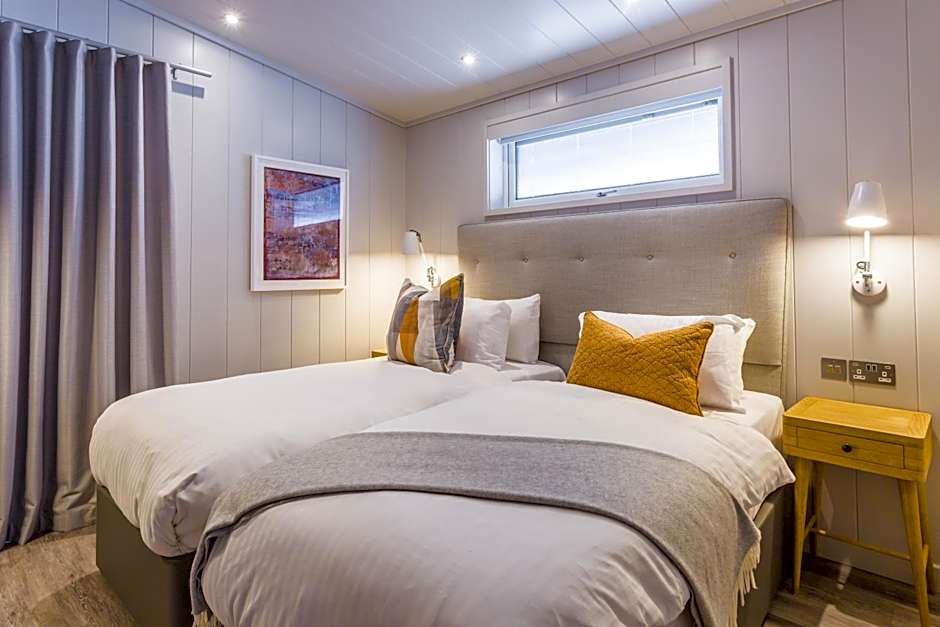 Deluxe rooms feature a super king-size bed, separate bunk room, luxury bathroom, large windows and ambient lighting.