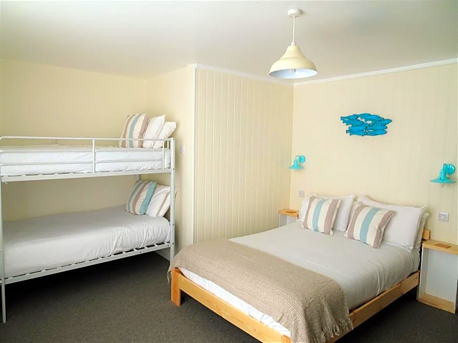 This ensuite family room has a beach facing balcony with sea view . There is also a TV and tea and coffee making facilities. Also, it is dog friendly.
