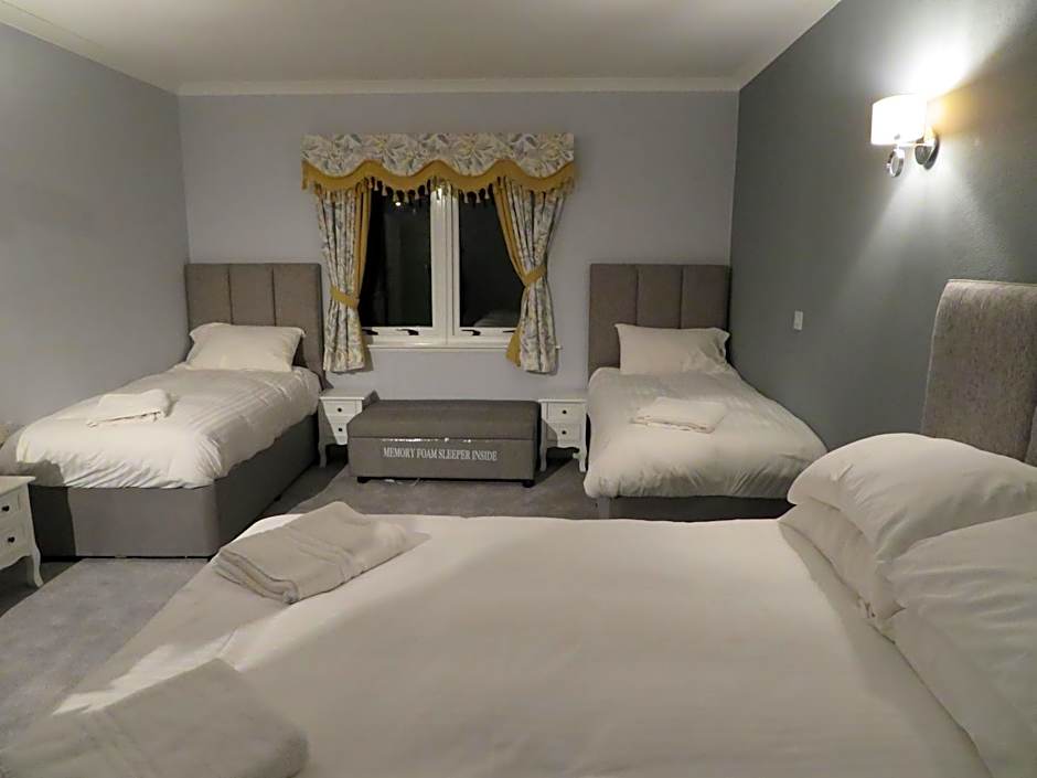 The Craigievar Guest House offers Deluxe King Rooms with a room size of 172 sqft and 194 sqft respectively. These rooms accommodate 2 adults and have a Queen size bed, with smoking not allowed. Additionally, there is a Family Double Room with a room size of 215 sqft, accommodating 5 adults. This room has 3 Twin beds and 1 Double bed, and smoking is not allowed.