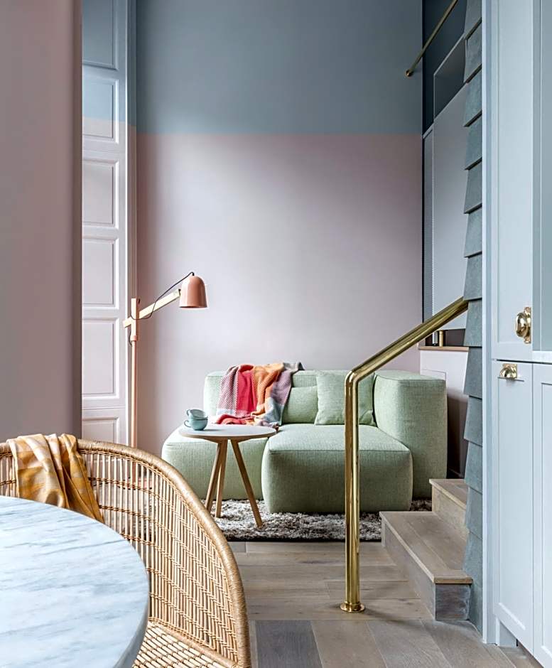 Staying for longer than a weekend? Upgrade to a Suite and give yourself more space to live. ‏‏‎ ‎ In around 98 ft² and with a separate sleeping area, you’ll have a king-size bed, as well as an iconic green L-shaped sofa for relaxing on. A fully-equipped kitchen with marble dining table, hob, washer/dryer, fridge/freezer and dishwasher, as well as lots of designer cooking gear.