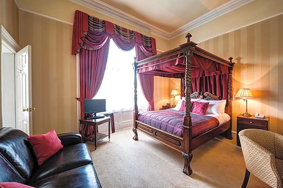These rooms have canopied four-poster beds, bath/shower, flat-screen TVs and high ceilings. Free WiFi, bottles of water, tea, coffee, complimentary shortbreads are also included in the room.