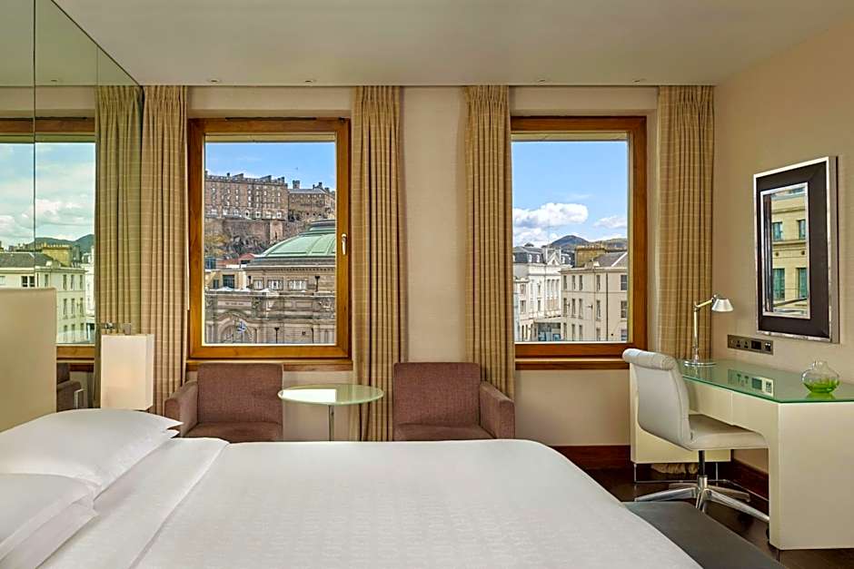 Welcome to the luxurious Sheraton Grand Hotel & Spa, located in the heart of Edinburgh. This 5-star hotel is the perfect retreat for travelers seeking relaxation and indulgence. With its prime location just 0.5マイル from the city center, guests can easily explore the vibrant streets of Edinburgh.