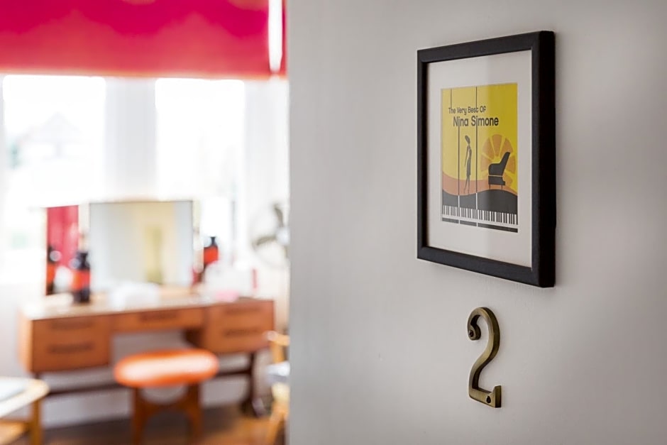 Dedicated to Nina Simone, this ground floor room has direct access to a garden terrace and a bay window with a view of the sea and garden. Guests can sit and relax in 2 Ercol chairs. The room has a king-size bed, feather bedding and cotton linen. The en suite has a power shower and complimentary toiletries. There is a flat-screen smart TV, DAB radio and free WiFi access. Guests can enjoy the range of coffee, specialty teas, hot chocolate and biscuits available. The fridge is stocked with bottled water and fresh milk.
