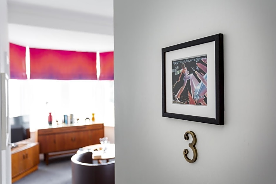 Dedicated to Dusty Springfield, this first-floor bedroom has a king-size bed with feather bedding and cotton linen and private balcony with sea views. Guests can enjoy the views from an Ercol chair. The en suite has a shower and complimentary toiletries. Room facilities include a flat-screen smart TV, DAB radio, slippers, and range of coffee, specialty teas, hot chocolate and biscuits. The fridge comes with bottled water and fresh milk.