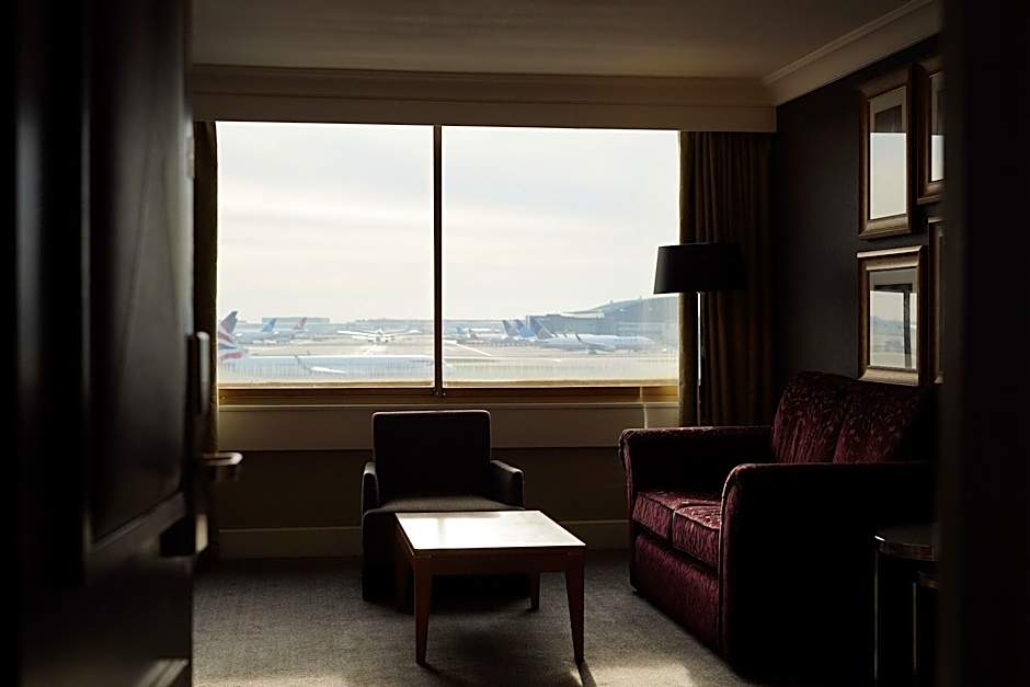 This room has access to the Club Lounge which is open 24 hours a day, and has canapés served in the evening along with free alcoholic and soft drinks. Hot breakfast between 06:00 and 10:00 is also served in the Club Lounge. The lounge has stunning views of Heathrow Airport, free newspapers, and the service of a Club Lounge Attendant. It also includes satellite TV, tea, coffee and soft drinks.