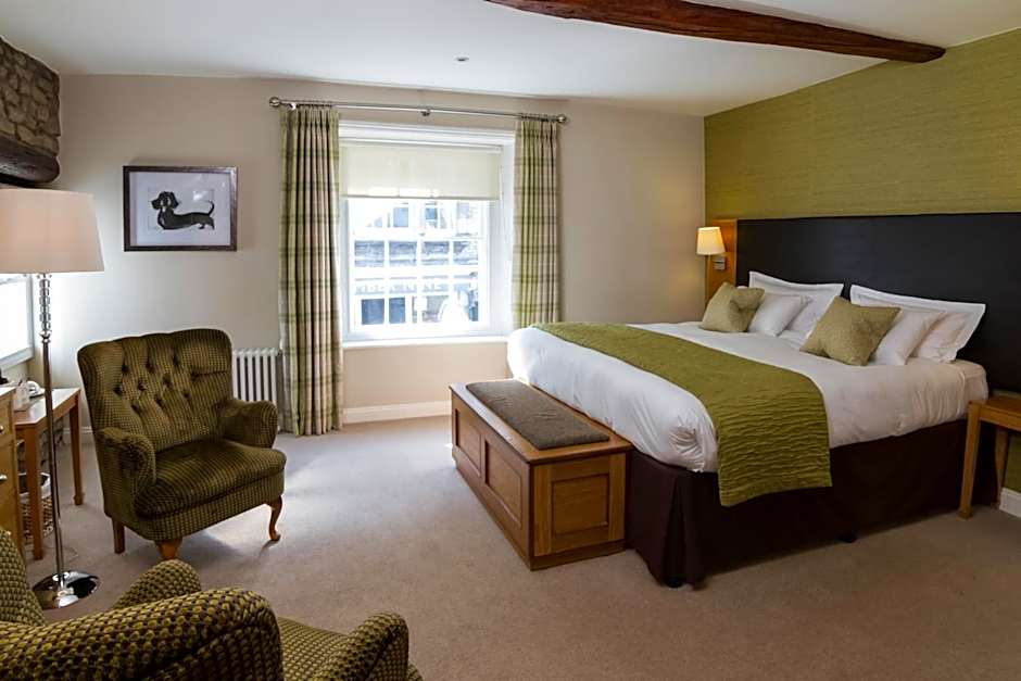 At the front of the inn overlooking Market Street, this spacious room has a 7-foot super king-size bed that can also be split into twin beds, a flat-screen TV, two armchairs, a desk, a dressing table and spacious wardrobe. There is also a bathroom with an extra long, extra wide bath and a rain-head shower over, tea and coffee making facilities and free WiFi.