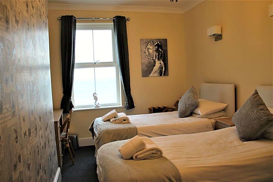Twin room with attached bathroom with 2 single beds, tea/coffee making facilities and Freeview TV. Some twin rooms have sea views, subject to availability and a supplement.