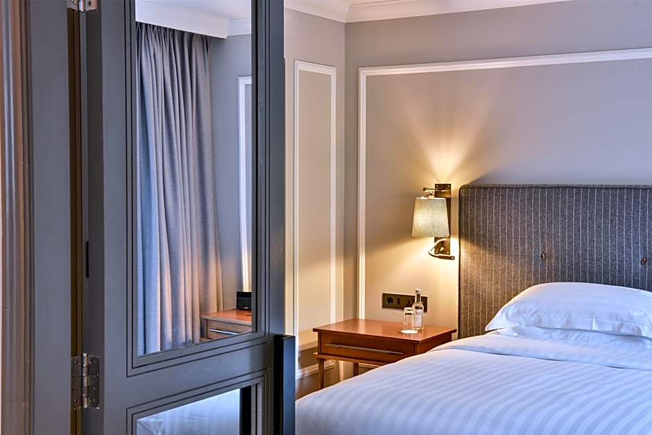 With courtyard or garden views, this luxurious suite includes a separate lounge and work area. It also offers a guest bathroom and a master bathroom with a bath tub, walk-in shower, and a bidet. The bedroom has a king-size bed. Guests can enjoy access to the exclusive Club Lounge, which offers daily continental breakfast, evening cocktails, and canapés.