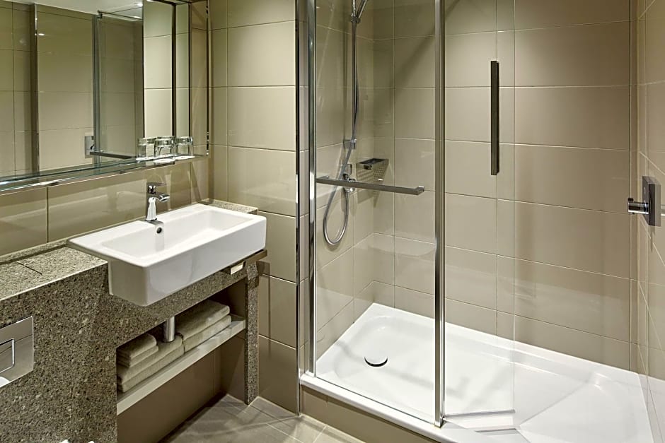 A large room with a separate seating area with a relaxing sofa bed, an LCD TV with pay movies, air conditioning and a mini-bar. Each spacious room has modern décor, free internet access, an private bathroom and Marriott bedding with down duvets, pillows and mattress topper.