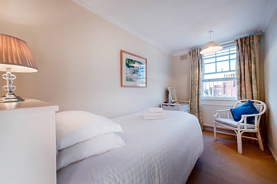This exceptional, premium serviced apartment features four bedrooms (king, double, twin, twin) and three full sized bathrooms with shower over bath and a walk-in shower. The two reception rooms are laid out as a formal lounge or dining room and a more relaxed TV room. This wonderful self-catering option features fully fitted kitchen with dishwasher and washing machine, four full bedrooms; and three full bathrooms. Perfect for up to eight guests.