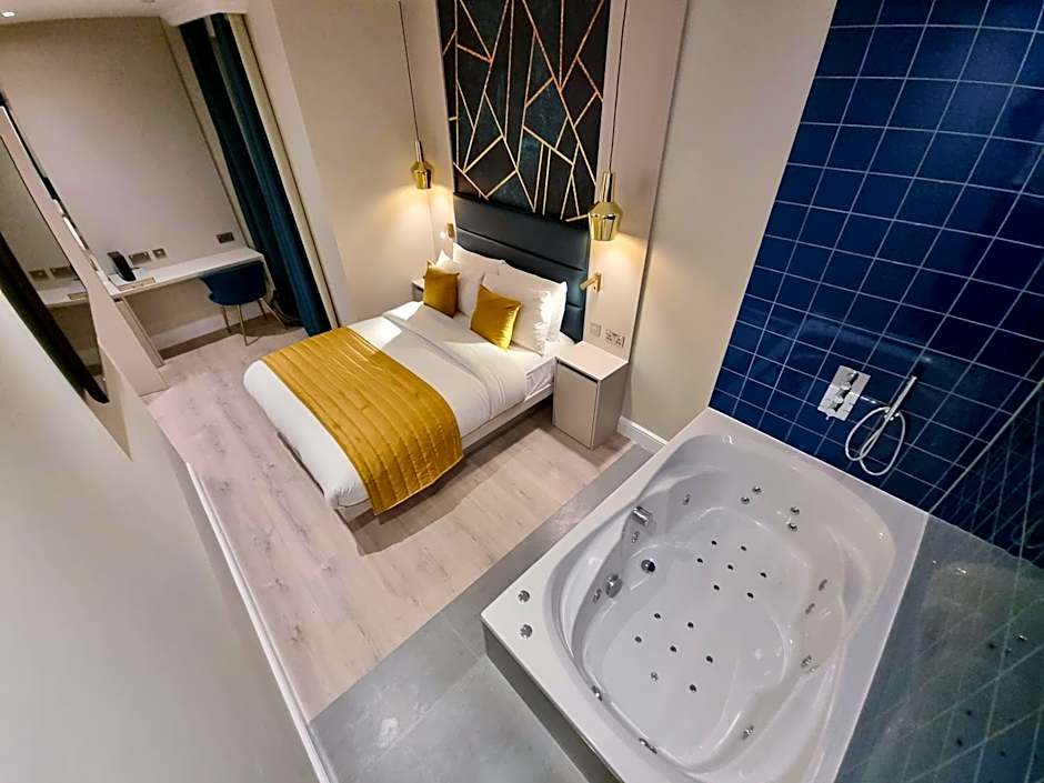 The hotel offers a variety of room types including Standard Double Studios, Signature Jacuzzi Suites, Double Studios, and Double Studios on the lower ground floor without windows. All rooms can accommodate 2 adults and do not allow smoking. The room sizes range from 140 sqft to 248 sqft and all rooms are equipped with a double bed.