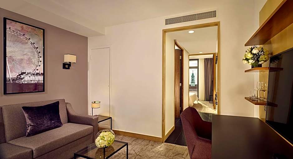 These individually designed Penthouses are located on the top floor of the hotel, and come with a larger bedroom with a king-size bed, a living area, and a private balcony offering stunning panoramic views over London’s skyline. There is complimentary internet access.