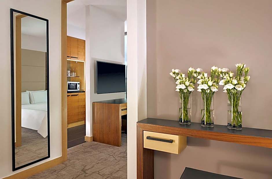 These nonsmoking rooms have Egyptian cotton sheets, climate control and complimentary internet. Rooms offer double or twin beds, free access to the fitness center, a separate bathtub or shower as well as views of the atrium.