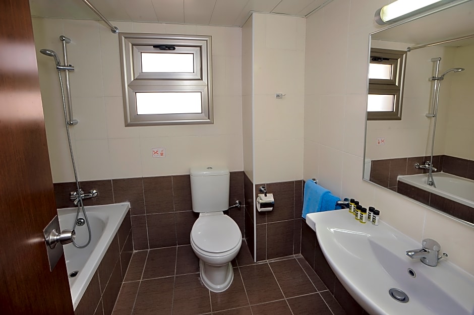 Room options run from cozy to expansive. The Deluxe Double Room measures about 183 square feet and comes with a Queen-size bed, accommodating up to 4 adults and 3 children. For bigger groups, suites offer more space—such as a Suite, Balcony at 183 square feet that can host up to 8 adults and 5 children with a King-size bed and a sofa bed, plus other suites and apartment-style options to choose from.