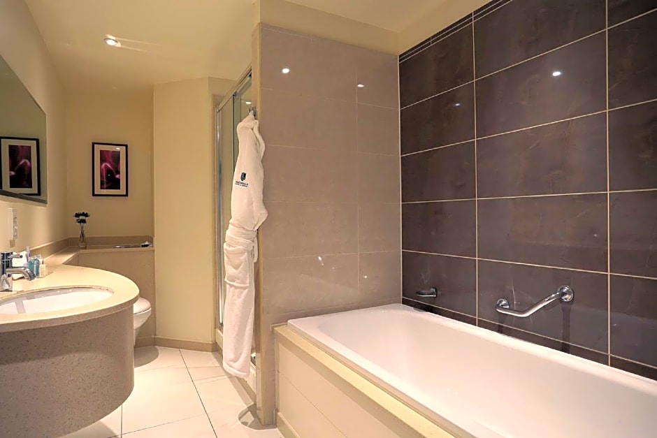 The air-conditioned suite has 1 bedroom and 1 bathroom with a walk-in shower and a bath. The suite offers a flat-screen TV with streaming services, a tea and coffee maker, executive lounge access, as well as city views. The unit has 1 bed.
