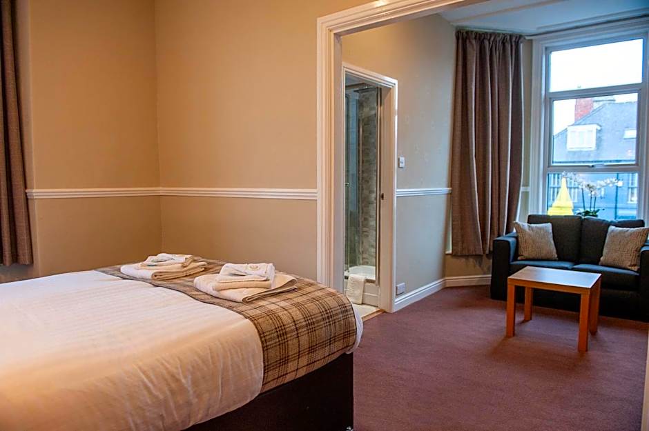 The Osborne Hotel offers Quadruple Rooms, which can accommodate up to 4 adults and feature 2 twin beds and 1 double bed. Smoking is not allowed in these rooms. Additionally, the hotel offers Single Rooms, perfect for solo travelers, with a single twin bed and non-smoking policy.