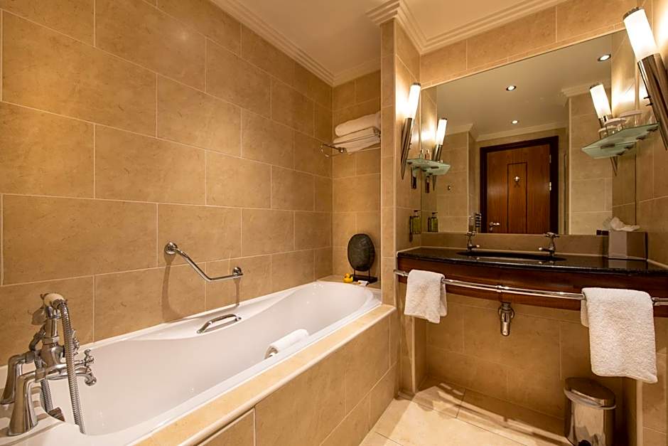 With views over landscaped gardens, this air-conditioned room also features an emperor-size bed, terrace or Juliet balcony, and an en suite luxury bathroom with Molton Brown toiletries. An LCD TV with Sky channels and free Wi-Fi/broadband Internet connection are also provided.