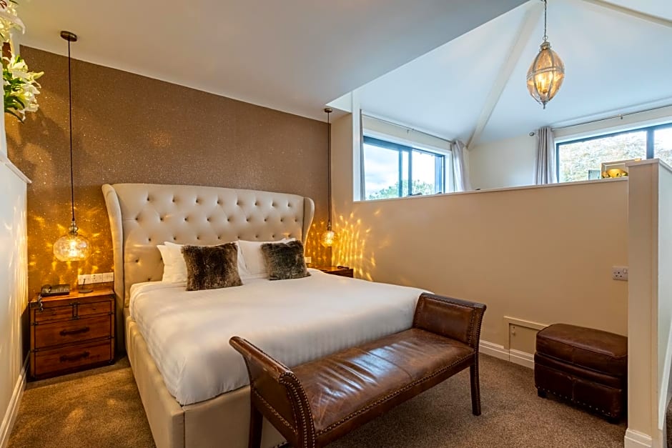 This adult-only Penthouse Suite is split over three levels and includes a super king-size bed, a lounge which leads onto a private balcony with a rooftop hot tub overlooking Lake Windermere.