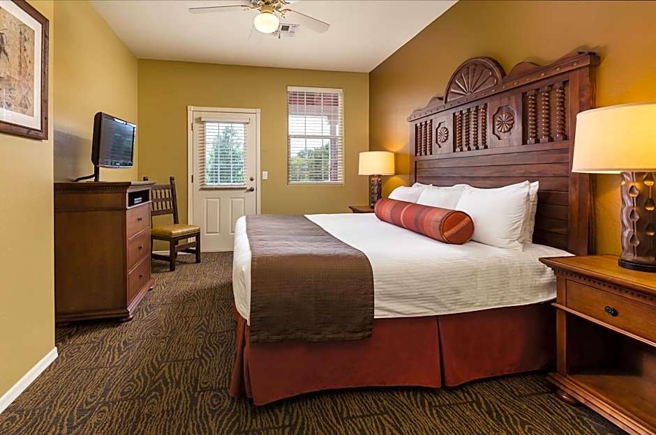 Guests at Worldmark Bison Ranch can enjoy a variety of leisure activities during their stay. They can relax by the outdoor swimming pool or the dedicated kids' pool. Those looking to stay active can make use of the fitness center or even play a round of golf. For a more relaxed experience, guests can unwind in the hot tub/jacuzzi or enjoy a meal at the on-site restaurant, Wild Women Saloon and Grill, which offers American cuisine in a family-friendly ambiance. Additionally, they can take advantage of the picnic area, barbecue facilities, and private patio or balcony for some outdoor dining or lounging. The hotel also provides private parking and a 24-hour front desk for guests' convenience.