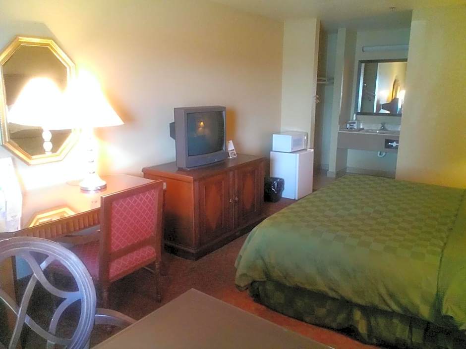 At Days Inn by Wyndham Kingman East, guests can spend their time enjoying the hotel's leisure amenities. They can take advantage of the free Wi-Fi to stay connected or relax in air-conditioned comfort. At the 24-hour front desk, guests can inquire about nearby attractions or recommendations. Those traveling with pets can bring their furry companions along, as the hotel is pet-friendly. After a day of exploring Kingman, guests can unwind in the comfort of the non-smoking rooms equipped with bathtubs and free toiletries. With parking available on-site, guests can conveniently come and go as they please, while the private bathroom ensures privacy and relaxation during their stay.