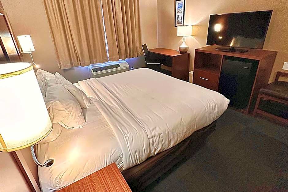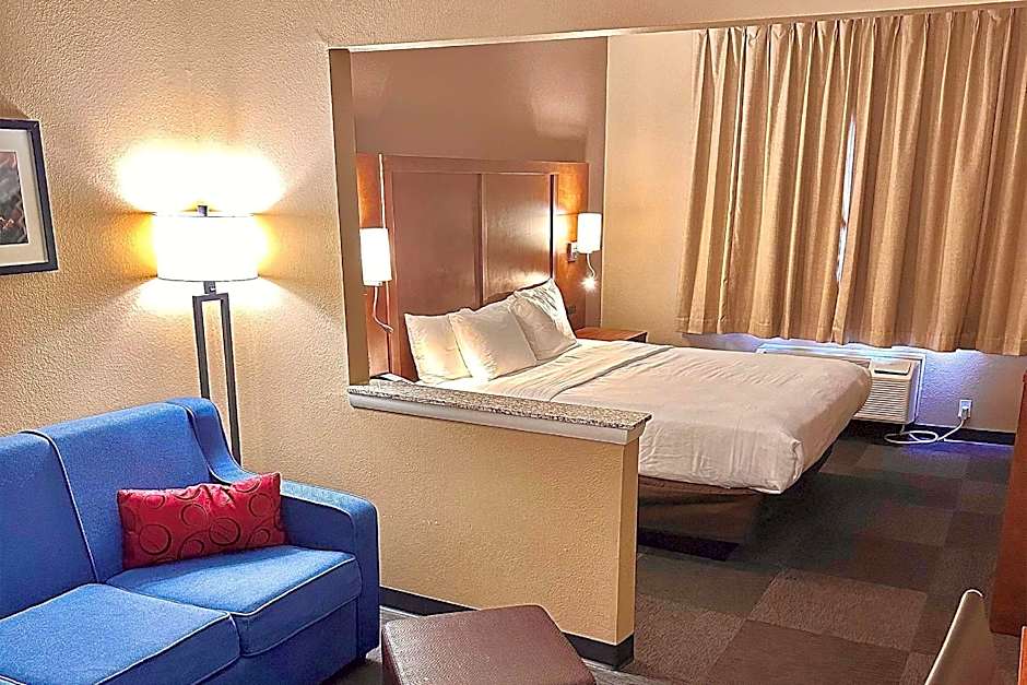 The Baymont by Wyndham Phoenix North offers a King Room, a Studio Suite with Two Queen Beds, and a One-Bedroom Suite. All rooms are non-smoking. The King Room accommodates 2 adults and 1 child and features a king-size bed. The Studio Suite with Two Queen Beds accommodates 6 adults and 4 children and includes two queen-size beds. The One-Bedroom Suite accommodates 4 adults and 3 children and features a queen-size bed.