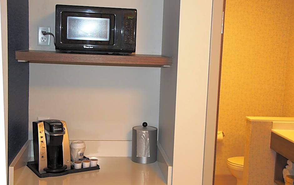 This room includes a refrigerator, microwave and Keurig® coffee maker.