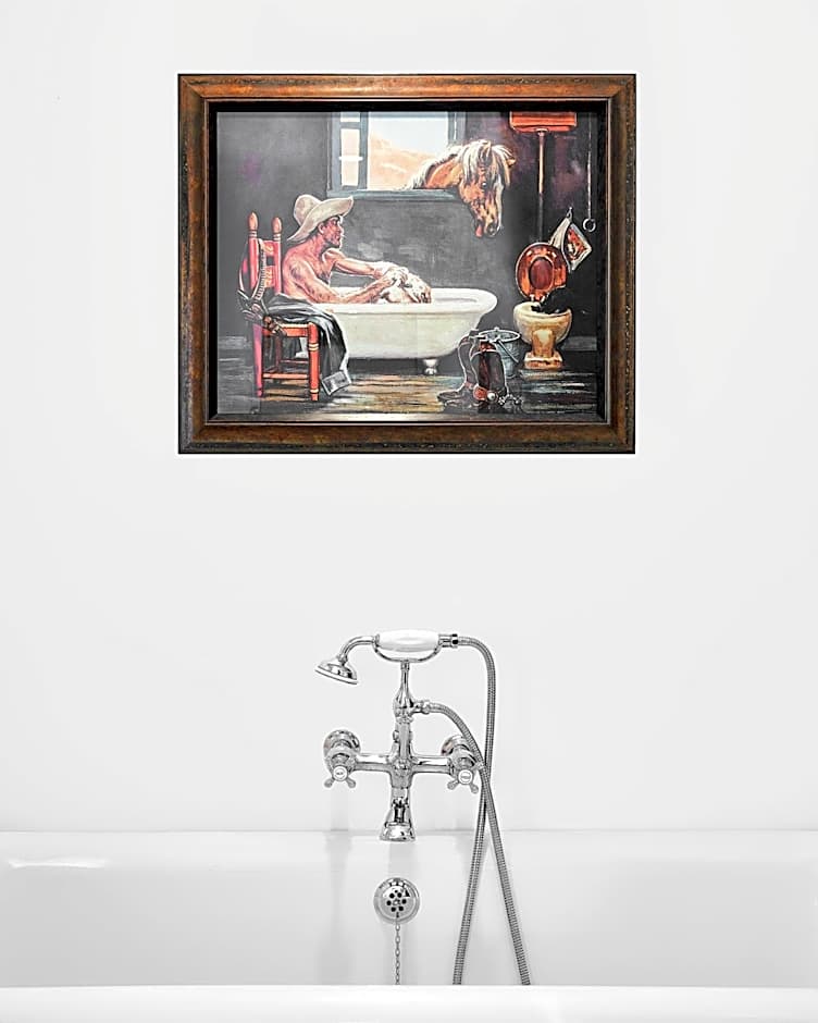 This suite features a patio, a living room and a bathroom with a walk-in shower and an antique pedestal tub. There are also 2 flat-screen TVs, a stereo sound system, small refrigerator and a coffee maker.