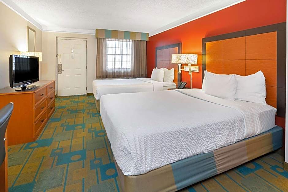 Rooms at La Quinta Inn by Wyndham Phoenix Sky Harbor Airport include Deluxe King, Double with Two Double Beds, King, Queen, King - Disability Access, Deluxe Double with Two Double Beds, and Double with Two Double Beds - Mobility Access. These rooms range from accommodating 2 adults and 1 child to 4 adults and 2 children. Bed sizes offered are King, Queen, and Double. Smoking is not allowed in any of the rooms.