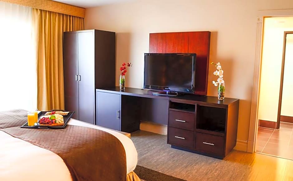 A separate seating area with sofa bed is featured in this suite. Free Wi-Fi, a 40-inch flat-screen HD cable TV, microwave, small fridge, wet bar, laptop safe and MP3 player are also included.
