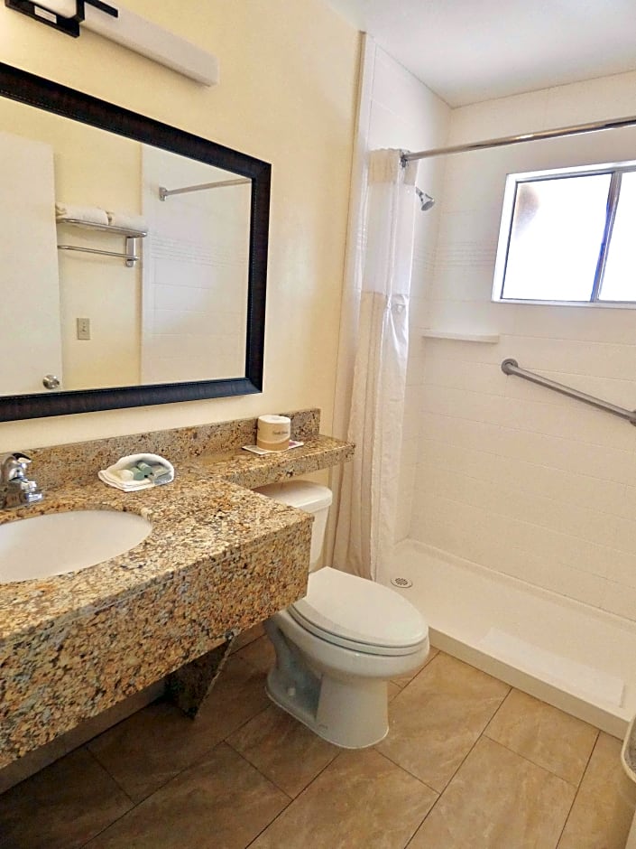 This Queen room with two queen beds mobility access no-smoking features a roll in shower, activity table, chair, flat screen TV and extra wide doorways.