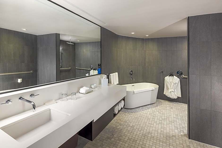 The hotel offers a King Room with Sofa Bed - Hearing Accessible and a King Room with Sofa Bed and Adapted Tub - Mobility Accessible, both with a room size of 323 sqft. Additionally, there is a Queen Room with Two Queen Beds and a King Room with Sofa Bed, both with a room size of 301 sqft. All rooms have a non-smoking policy and can accommodate up to 4 adults and 3 children. The King Rooms have 1 King size bed and 1 Sofa Bed, while the Queen Room has 2 Queen size beds.