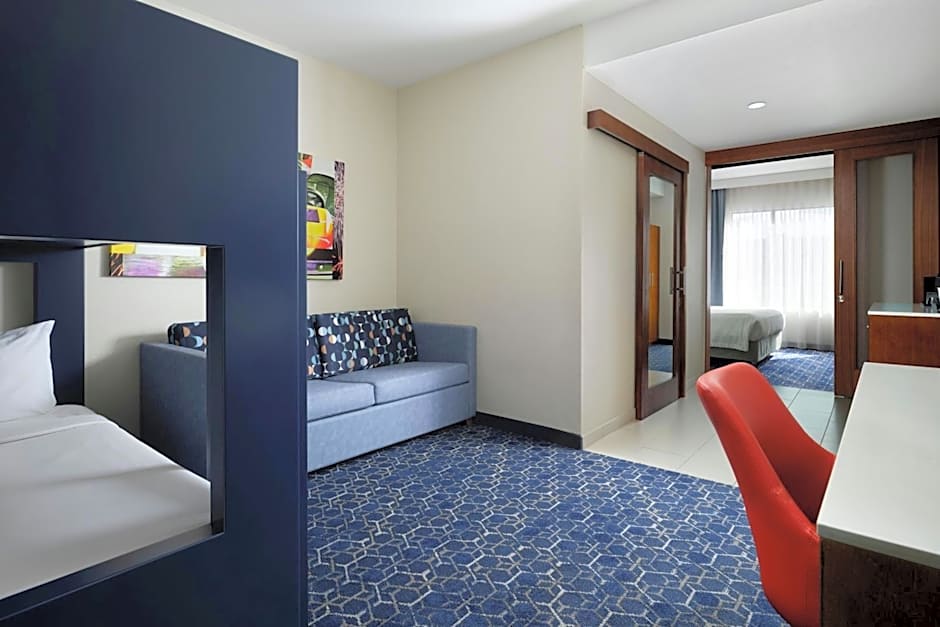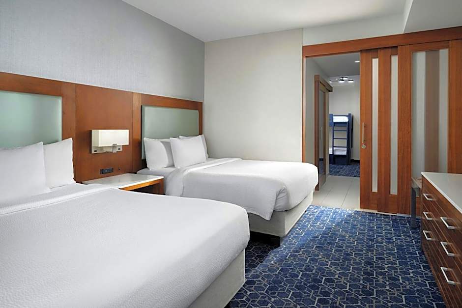 This family-oriented suite features 2 queen beds, a seating area with a sofa bed and twin bunk beds.