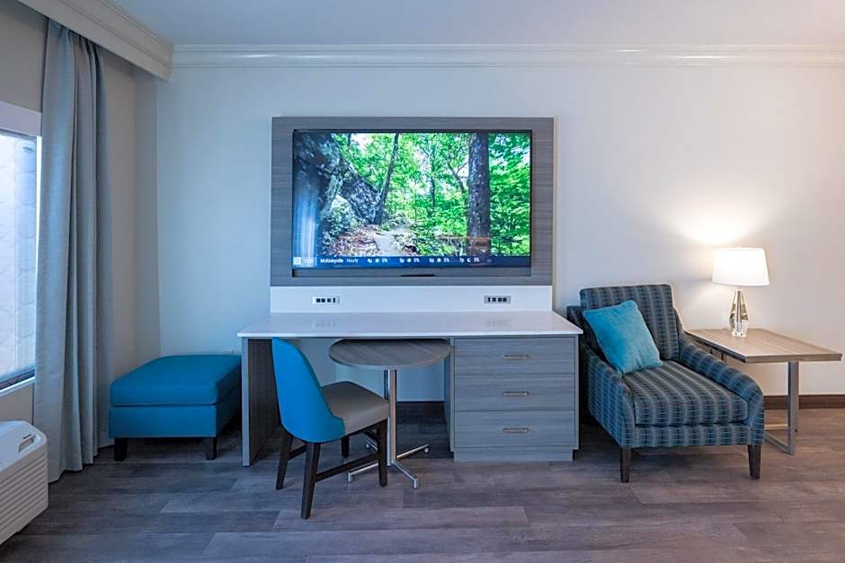 This room offers a breakfast nook with a counter, coffee machine, and a mirror, a chair and desk, an alarm clock/radio, a flat-screen TV with cable and HBO film channels, a closet, and an private bathroom with a hairdryer, a shower, and free toiletries.