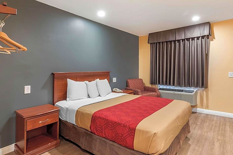 The Rodeway Inn Carson - Los Angeles South offers non-smoking queen bed rooms, which can accommodate 2 adults and 1 child. There are also queen rooms with two queen beds available, both smoking and non-smoking, which can accommodate 4 adults and 3 children. All rooms have queen size beds and range in size from 140 sqft to 183 sqft.