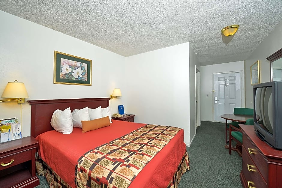 Americas Best Value Inn - Chico offers a variety of room options including single occupancy rooms with a King size bed, a Queen size bed, or a Double bed, all nonsmoking. For larger groups, there are Double rooms with two Double beds, accommodating up to 4 adults and 3 children. Some rooms come with a jetted tub or mobility accessibility features. Smoking is allowed in some rooms, but the majority are nonsmoking.