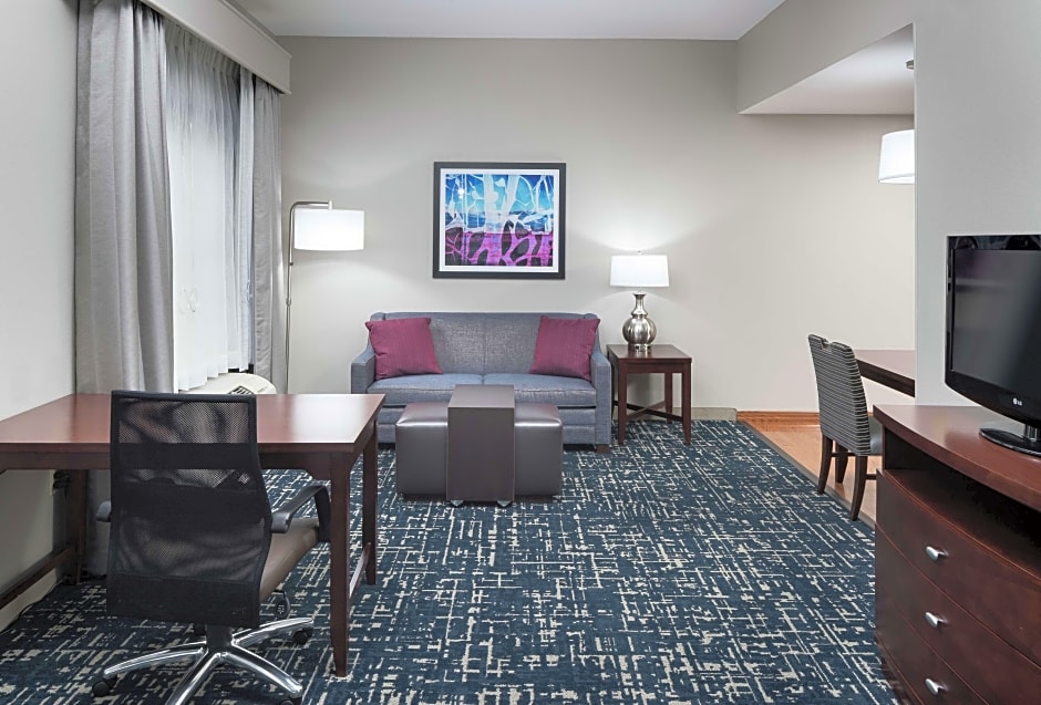 This spacious suite features 2 TVs and separate living room with sofa bed.