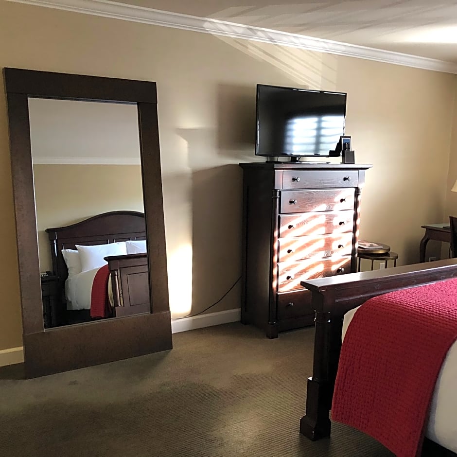 This spacious air-conditioned suite includes a fireplace, a full-size bathroom with granite counter-tops and dual vanity mirrors, an LCD TV, an iHome docking station and a mini-fridge.