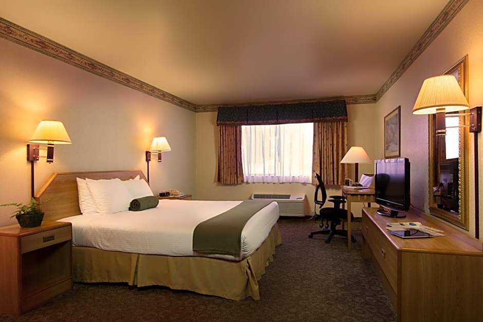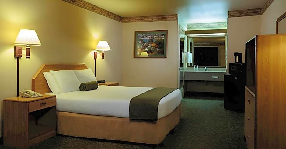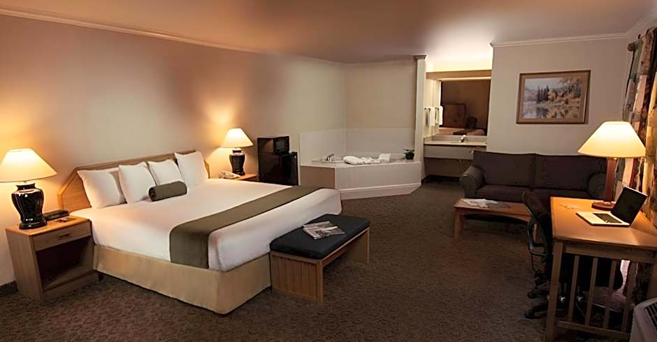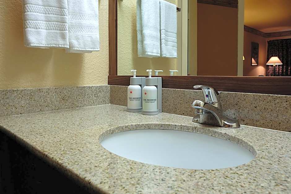 Also known as The Redwood King Executive, this air-conditioned deluxe room has a flat-screen cable TV, a refrigerator and a microwave. It includes a work desk and a generous bathroom with a tub/shower, granite vanity and spa grade bath amenities.