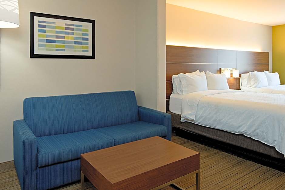 The Holiday Inn Express Fresno South offers a variety of room options. These include Executive King Rooms, Standard Rooms with double beds, Queen Rooms with Two Queen Beds, King Suites with Sofa Beds, Deluxe Queen Suites with Sofa Beds, King Rooms, King Rooms with Disability Access, Twin Rooms with 2 Double Beds and Roll in Shower with Disability Access, King Suites, and Queen Suites with Two Queen Beds. All rooms are non-smoking and have a size of 355 sqft. The occupancy ranges from 2 adults and 1 child to 6 adults and 4 children, depending on the room type.