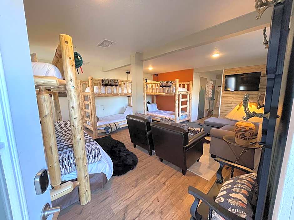 Yosemite Basecamp offers Family Studios with a room size of 452 sqft and the ability to accommodate 6 adults. Smoking is not allowed in these rooms, and they feature bunk beds, queen size beds, and twin beds. The Two-Bedroom Villas have a larger room size of 904 sqft and can accommodate 5 adults. Like the Family Studios, smoking is not allowed, and they consist of bunk beds, a queen size bed, and twin beds. The Deluxe Queen Suites have a room size of 797 sqft and can accommodate 4 adults. Smoking is not allowed in these suites, and they feature a sofa bed and a queen size bed.