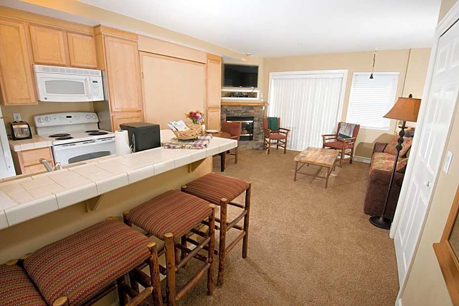 A broad mix of accommodations is available, ranging from studios to multi-bedroom layouts, with examples such as Luxury Condo, 1 Bedroom; Meadows Region Condominium, 2 Bedroom; Chalet, 3 Bedroom; Villa, 2 Bedroom; and Townhouse, 2 Bedroom. Cash is not accepted, and payments can be made with American Express, Discover, Visa, or Mastercard.