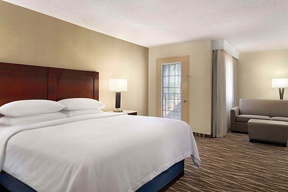The hotel boasts an array of fantastic amenities, ensuring a memorable stay. Take a dip in the outdoor swimming pool or unwind in the hot tub/Jacuzzi. Stay connected with free WiFi or break a sweat in the fitness center. Enjoy a delicious breakfast offered by the hotel, setting you up for the day ahead. The on-site restaurant and bar provide a range of dining options, while the garden offers a peaceful oasis. With handy facilities such as free parking, a business center, and pet-friendly rooms available, Embassy Suites caters to all needs.