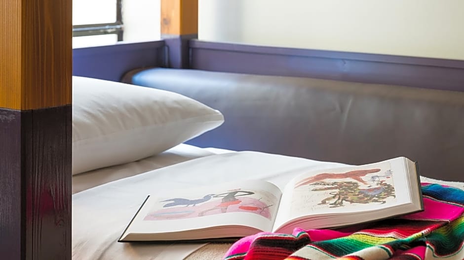 This coed quad accommodates 4 individual guests with custom cedar bunk beds and a private, private bathroom. Beds feature built-in privacy screens, outlets, and reading lights. Free WiFi is also provided, with secure in-room lockers, linens, blankets, and towels for each guest. These rooms have been thoughtfully designed by Roman & Williams, with hand woven textiles and artwork from local Los Angeles artists.