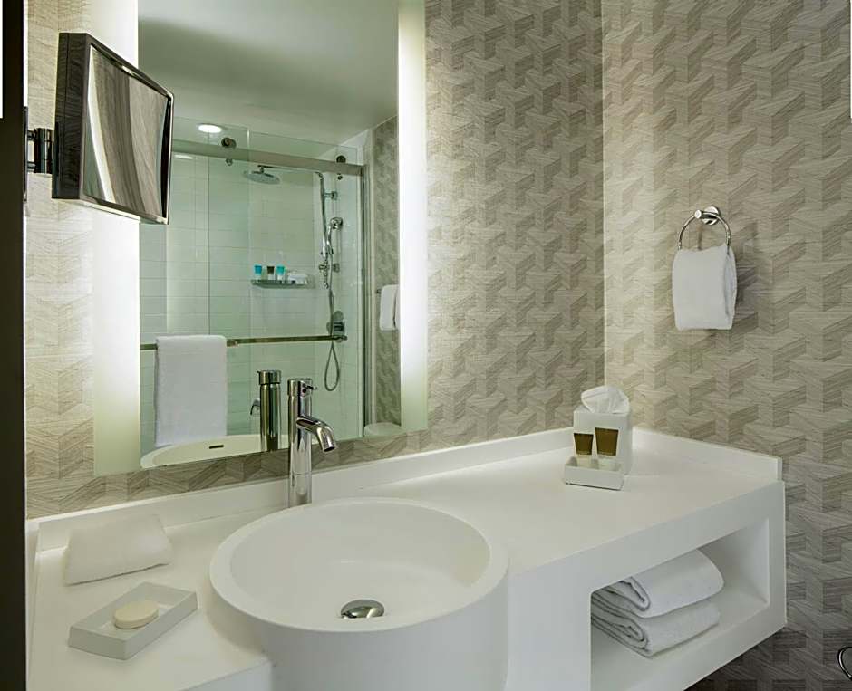Room equipped with Hyatt's pillow-top Sealy Posturepedic Grand Beds, a 55" flat-screen TV, HMI connectivity, free WiFi, soundproof windows and blackout Roman shades, multiple device plug-ins, Coffeemaker with Starbucks coffee and rainfall shower with shower wand.