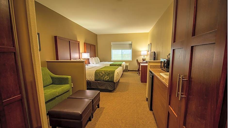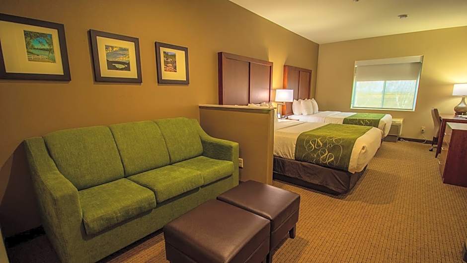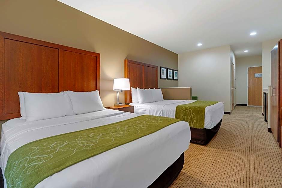 The Comfort Suites Marysville-Yuba City offers various types of rooms including King Suites, Queen Suites with Two Queen Beds, and Queen Suites with Two Queen Beds and accessibility features. All rooms are non-smoking and have a room size of 323 sqft. The King Suite accommodates 4 adults and 3 children, while the Queen Suites can accommodate either 4 adults and 3 children or 6 adults and 4 children, depending on the room type. The rooms are furnished with either 1 King size bed or 2 Queen size beds.