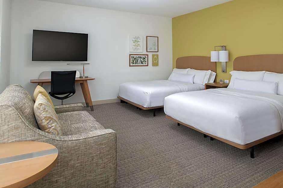 The hotel offers Studio rooms with either 2 Queen beds or 1 King bed, as well as a sofa bed. These rooms have a size of 355 sqft and do not allow smoking. The Studio rooms accommodate between 3 to 5 adults, with the option for additional children. There is also a Guest Room available with 1 King bed, accommodating 2 adults and 1 child. This room type is also non-smoking.