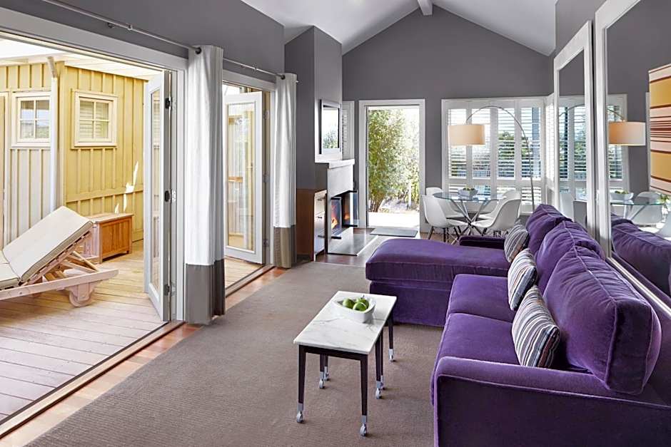 Also known as "Harvest Suite," this two-bedroom suite features 2 free-standing cottage rooms joined via an enclosed private deck. The spacious living room comes with a dining table, fireplace, and a 50" flat-screen TV. This suite features a large outdoor living space with an outdoor hot tub for 2, an open-air fireplace, and a private garden.